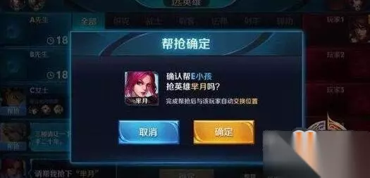 征兆模式新增帮抢功能:仅限于钻石或以上段位的排位赛 楼下玩家需要楼上玩家帮抢的时候,楼下玩家发起请求,楼上玩家如果点击确认后,双方会立刻调换位置,完成帮抢功能。例如:5楼想要妲己,刚好轮到2楼选英雄,5楼发起帮抢妲己,2楼点击确认,那么5楼会变成2楼,并选择了妲己,2楼就会变成5楼,原来的2楼(现在的5楼)依然需要自己选择自己的英雄。