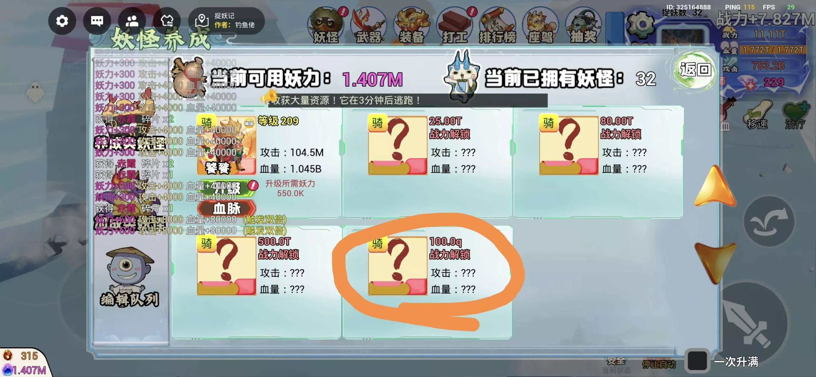 还有那个100q战力解锁的妖怪是不是前两个月才更新的???
