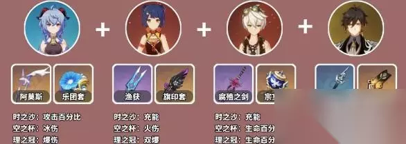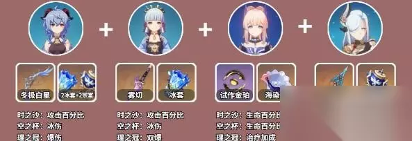 使用效果:为选中的角色恢复生命值上限的40%,并额外恢复2350点生命值。 角色配队 一、永冻流:甘雨+莫娜+砂糖+万叶。 搭配建议 1、永冻流是比较安慰舒适的,2号位置的莫娜除了挂水,还有星异可以增伤,下位替代可以用任意水系(心海、行秋、芭芭拉)挂水替代; 2、3号位置用风系聚怪减抗,砂糖和万叶,4号位置可以带钟离套盾减抗,也可以带冰猫凑双冰,或者带个副c。