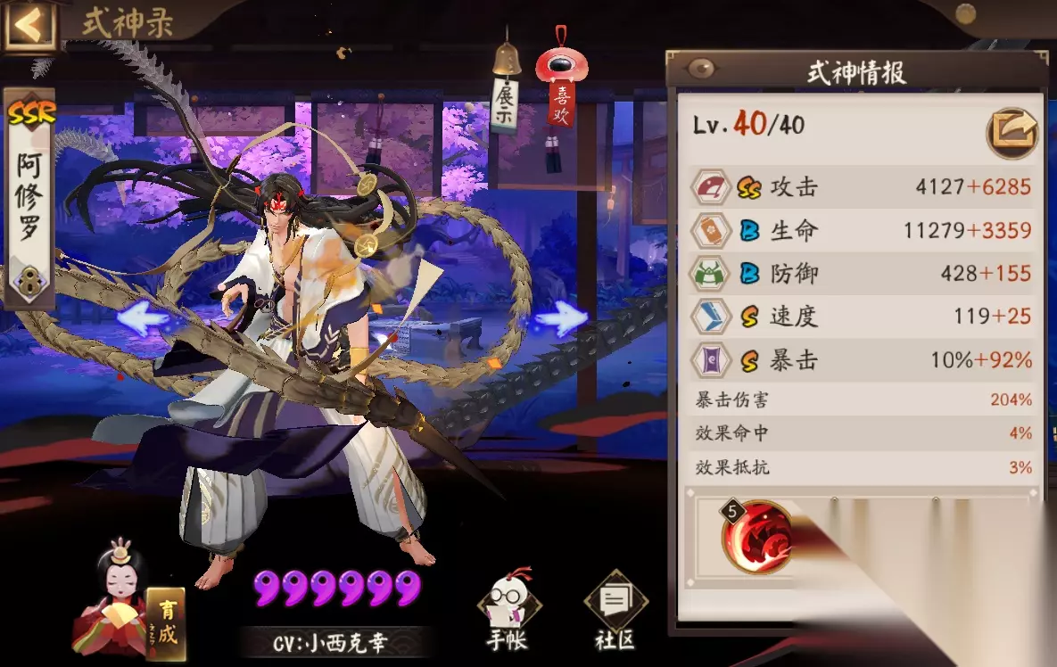 与紧那罗一样,阿修罗的面板也无需太高,即便再怎么平民都能用!小然我就是用狗粮破势+歌姬套去刷孟婆副本10层。选择它的原因除了伤害系数高之外,最重要的是在AOE之后的多段单体输出。如果各位没有阿修罗,使用紧那罗二号机、SP鸟姐、SR鸟姐等携带单体输出的式神都可以。(千姬、小缘等辅助御魂依然是老一套的招财)