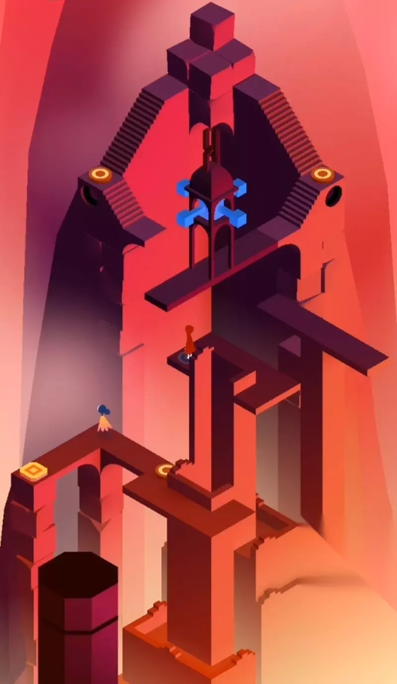 最后的第七个场景通过多次旋转轴承来搭建桥梁,让母女二人依次触碰三个粉色按钮。最终萝尔会来到图腾处,女儿则通过按钮前往第二个图腾,共同召唤星光完成这段感人至深的旅程。 纪念碑谷2第十四章虽然机关繁多,但只要按照步骤耐心操作就能顺利通关。这个充满艺术感的终章完美诠释了游戏独特的视觉风格和解谜乐趣。