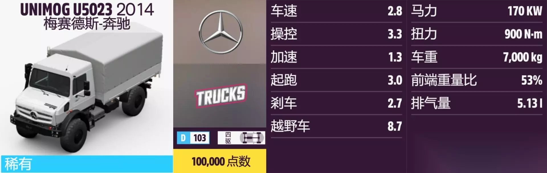 UNIMOG U5023 年份:2014年。 解锁方式:抽奖或通过车展购买。