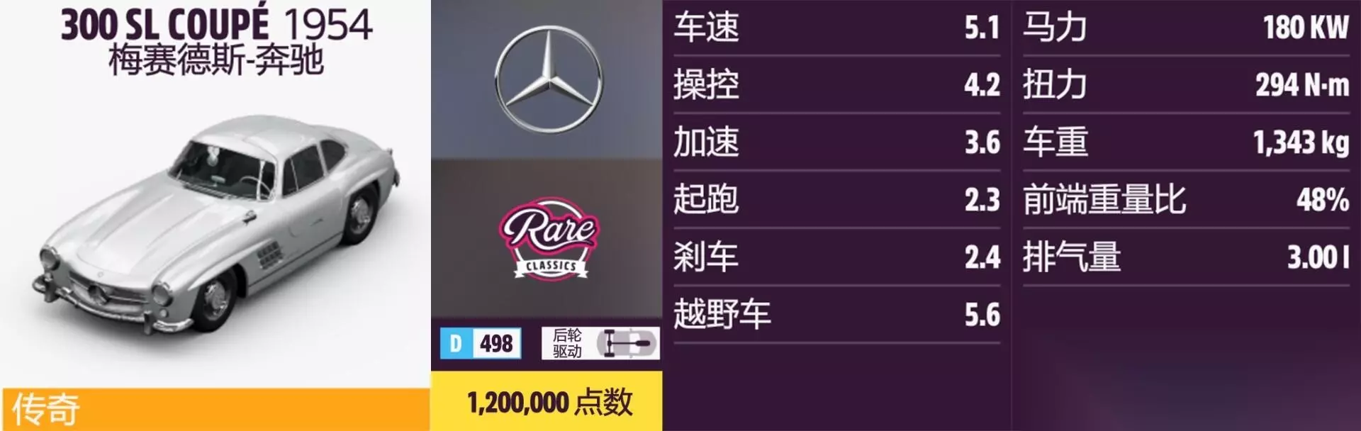 300 SL COUPE 年份:1954年。 解锁方式:抽奖或通过车展购买。