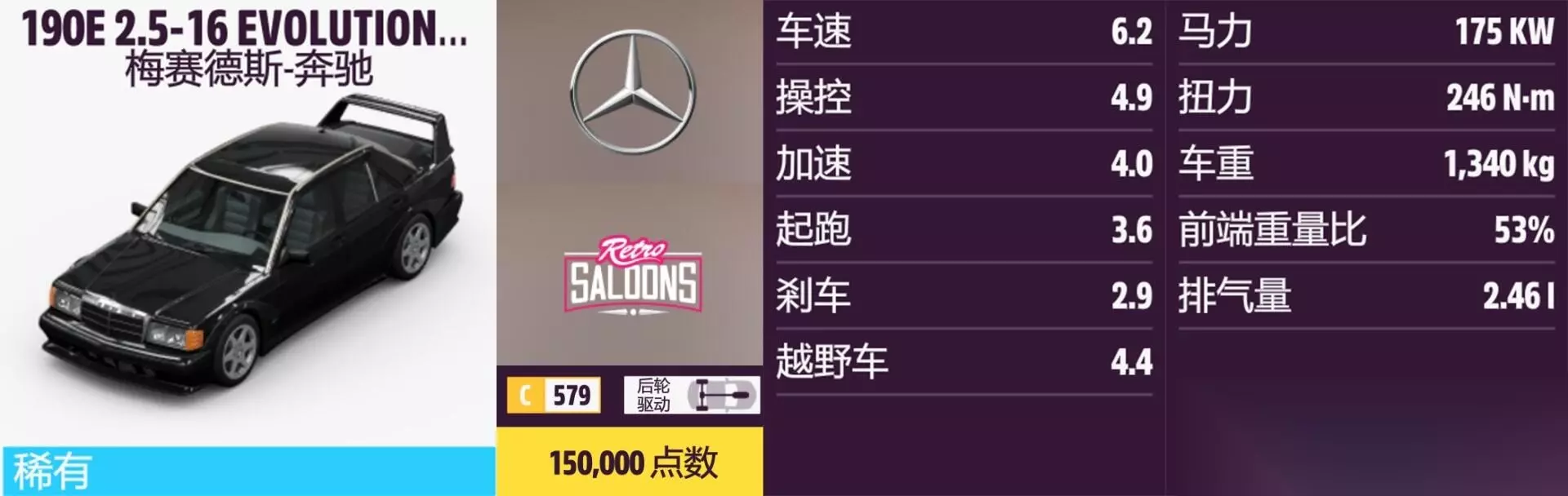 190E 2.5-16 EVOLUTION Ⅱ 年份:1990年。 解锁方式:抽奖或通过车展购买。