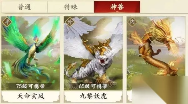 新天龙八部手游神兽获取攻略,有哪些神兽。新天龙八部手游中神兽相比普通珍兽和特殊珍兽,它的姿势以及培养潜力更大,目前神兽有三个:45级可携带的太古龙魂;65级可携带的九黎妖狐;一级75可携带的天命玄凤。