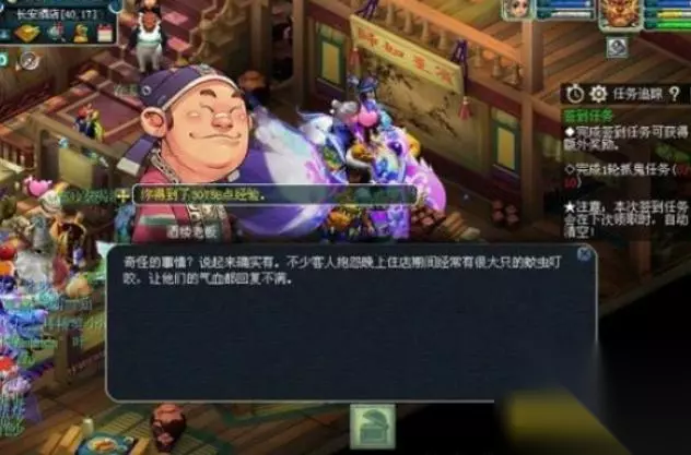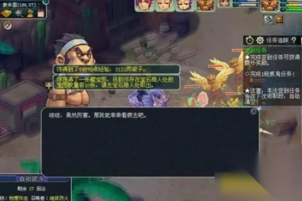 ③任务栏会让你去各个门派寻找门派弟子做系统提示的动作.