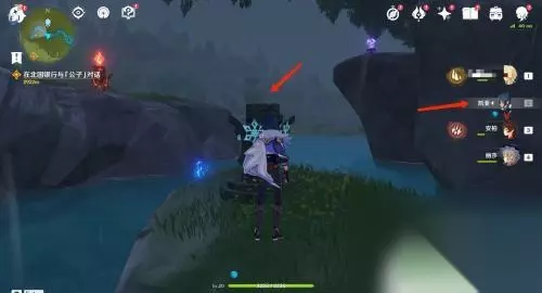 5.点亮冰柱子 在火柱子即可看到位于河流中央的冰柱子,靠近它。切换冰元素角色,使用冰元素攻击,点亮冰柱子。
