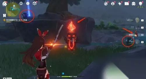 4.点亮雷柱子 在火柱子的附近,即可看到雷柱子。走进雷柱子,切换雷元素角色,使用雷元素攻击,点亮雷柱子。
