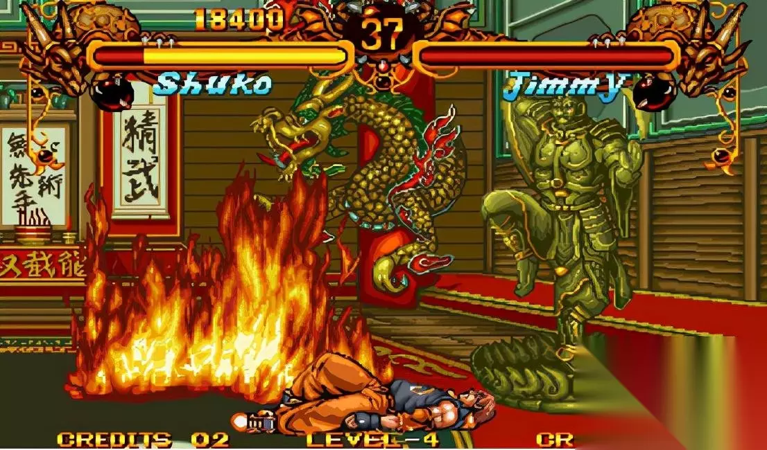 游戏规则介绍 按键则不分拳脚,而是分四级强度 CHARGE技 即超必杀技。只要击中敌人或被攻击,能源槽中的能量便会增加,当能源槽全满时便会有"CHARGE"的字样出现,这样就可以使用CHARGE技了 连续技 在本游戏中主要有两类的连续技,一类是以必杀技来取消普通技收招而形成的必杀技取消,而另一类则是和少年街霸的类似连锁技,按顺序由轻到重的按攻击键,便可以连续攻击对手,但要在OVERDRIVE MODE中才可用。 本游戏的气绝比较特别,分为两种。普通气绝:即角色站立,头上有星星,可趁此用连续技追击。躺下气绝:一般攻击无法打到,只能用对躺下气绝专用的DOWN攻击(↓·P)