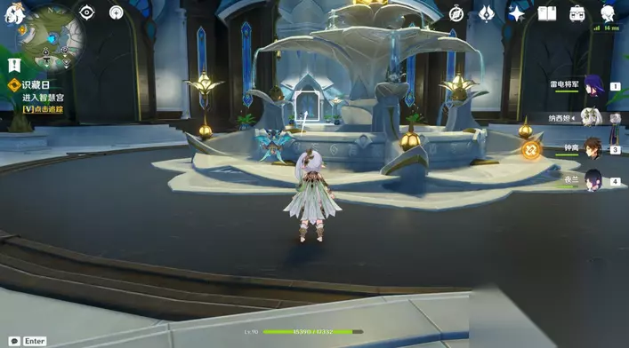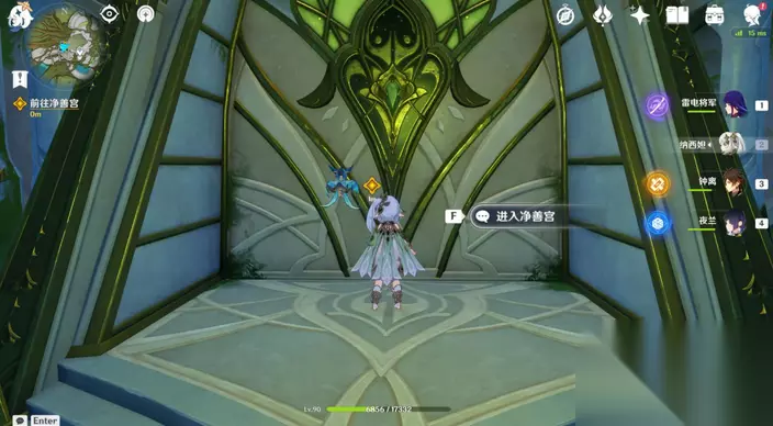 意识之舟所至之处 1、调整游戏时间至当天16点,进入净善宫,与纳西妲对话。