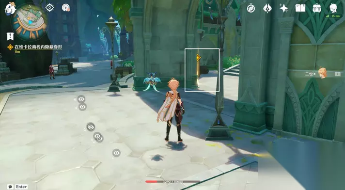 11、往地图的东南方向走,与艾尔海森对话。