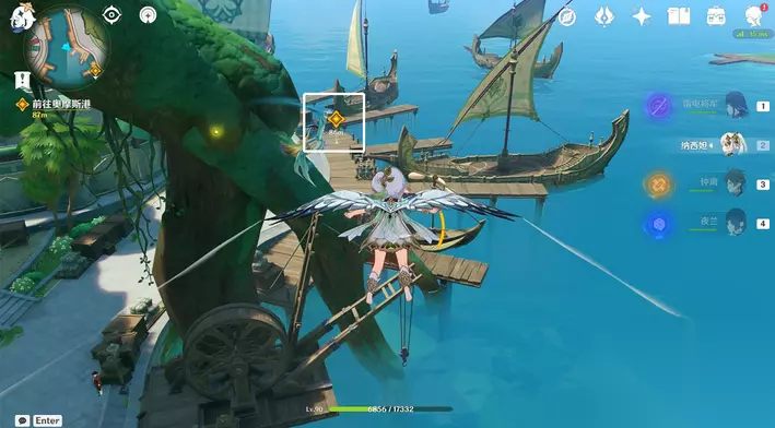 24、往地图的西北方向飞,利用四叶印,清理愚人众,获得宝箱③。