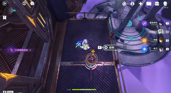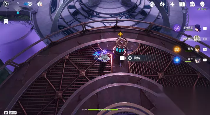 28、前往图中①②机关,按数字顺序各旋转1次,前往三角形位置,等待电梯过来。