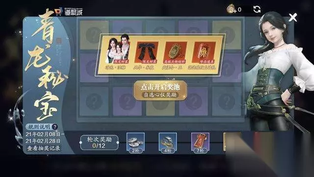 也就是说抽满12轮大约需要3000以内RMB大概在2700左右。着实不便宜,而且很多少侠觉得靠运气想抽好货,这里建议还是不要抱着这样的想法,因为青龙秘宝的抽奖权重比例是非常不协调的。 A档次奖品权重:2 B档次奖品权重:15 C档次奖品权重:270 D档次奖品权重:1000 想要前几轮抽中A档如同天衣抽白发。 时间不合理 本次活动出的没有什么毛病,就是为何不与之前新春版本更新一起推出,这样后续推出,导致了那些新春版本氪金的小伙伴存在后悔现象,这当然符合游戏公司的利益,但是不符合玩家的利益,在很多玩家觉得新春活动就这样了,纷纷充钱,然后又推出了全新的氪金活动外,之前的少侠欲哭无泪,还是希望游戏公司能站在玩家的利益考虑事情,这样才是一个双赢的局面。