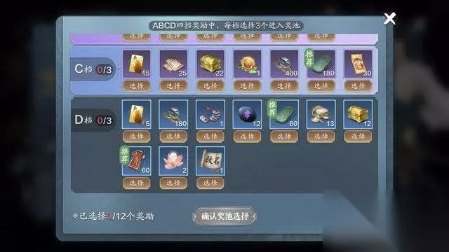 我们首先先说最下面的D档,蓝色品质道具,在这里选择道具肯定按照两个要求,第一贵重的,第二目前需要用的,而且需要排除极好获取的,选择需要时间或者获取繁琐的道具,这里建议先选择推荐的,不容易出错,比如帮助获取耗费时间,而且还有用,如果自身装备琢磨不够可以选择精工材料,洗练令牌,想要改名的可以选择改名卡,拒绝染色材料和NPC那些赠送道具。
