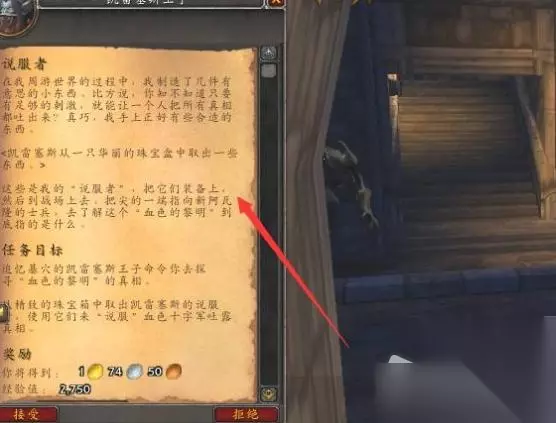《魔兽世界》dk说服者任务完成方法 需要装备凯雷塞斯的说服者后打怪出剧情,首先接到这个任务。