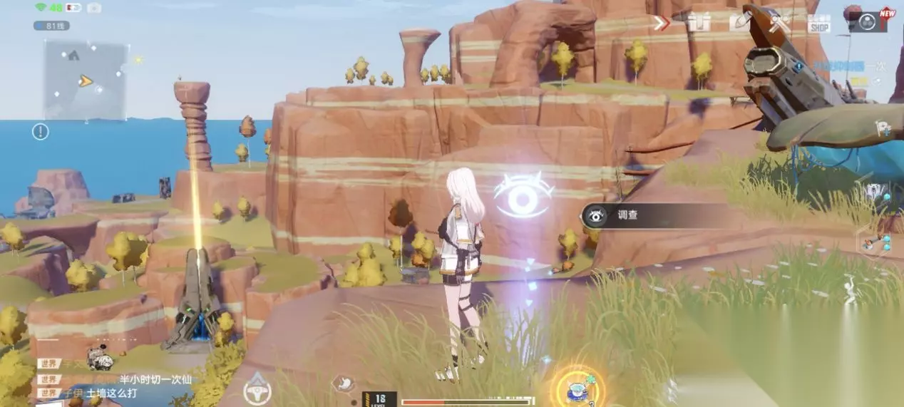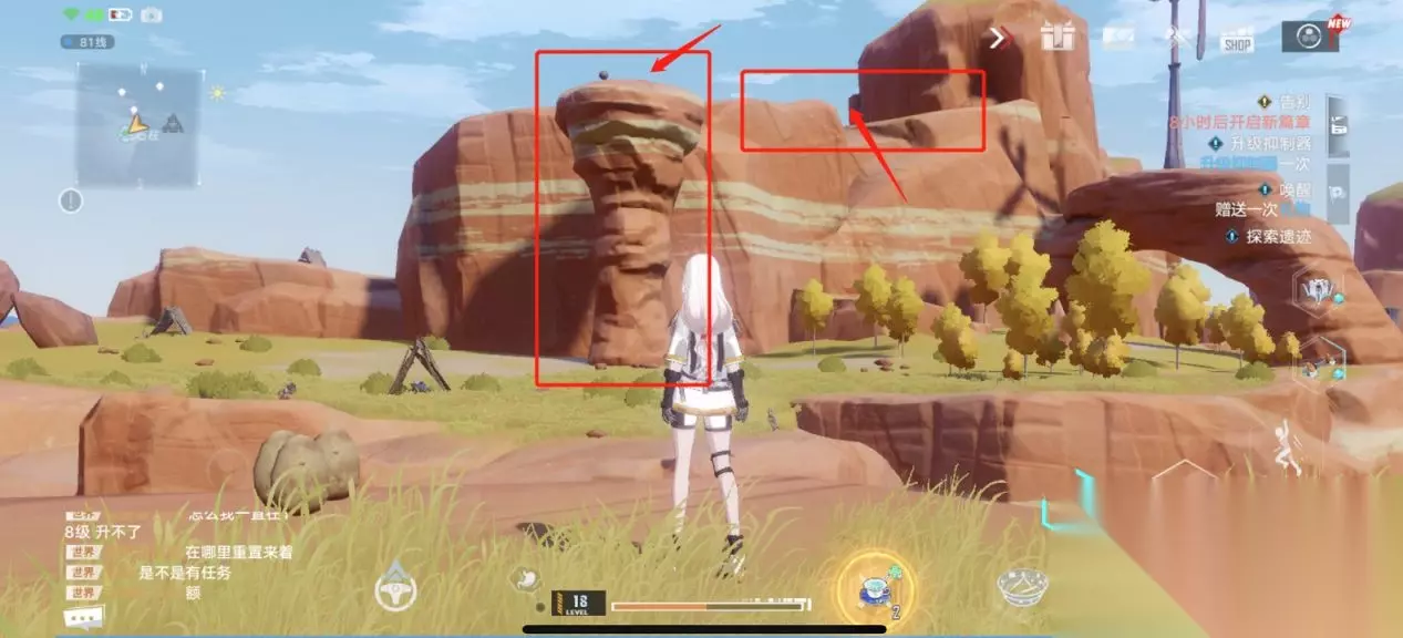 风景打卡4:回音环 坐标:(-663,897) 这一个地标我找了好久,稍微麻烦一些,要借助喷气背包调到悬崖边,然后从悬崖边调到石头顶上,后面图片演示。