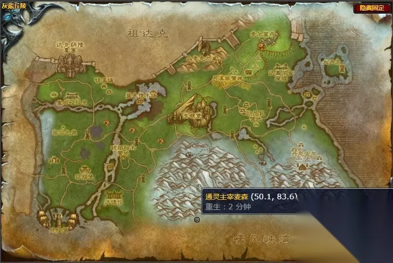 任务目标:通灵主宰麦森 通灵主宰麦森位置图 坐标(50.1,83.6)