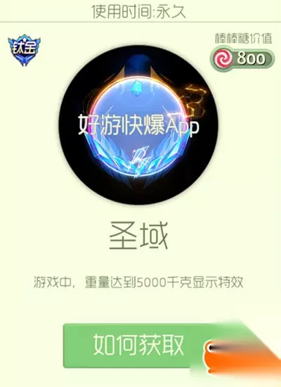 获取方式: 在活动期间开启特惠宝箱有机会获得,可在钛金宝箱界面开启特惠宝箱,皮肤价值800个棒棒糖。 圣域(光环) 神域光环看上去像守护着一颗宝石,有着神奇的力量。游戏中重量达到5000千克的时候限时特效,周围会有一些光影特效!