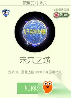 如何获取? 球宝们可在活动期间在钛金宝箱界面开启“特惠宝箱”即有机会获得,价值200棒棒糖。 未来之域(光环) 未来之域为橙色光环,游戏中,重量达到5000千克显示特效,光环四周带有很强的科技感,带上它一起穿越球球世界吧。