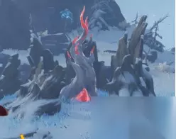 (3)奇怪的冰(古代坚冰):和正常的冰不一样,不可以用火融化,只能在有【深赤之石】环绕的时候才可以击碎 ps:中心的神像周围就有这种奇怪的冰,旅行者可以尝试用这种方法哦~