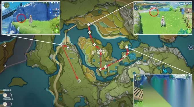 《原神》绝云椒椒采集位置路线图 一、注意事项 1.所需角色:瑶瑶,香菱 2.位于璃月,建议在队伍中加入七七/烟绯,天赋可以标记特产位置 3.数量共129个,预计用时15分钟 二、收集路线 1.轻策庄周边 短路程的高收益路线,很不错的路线 数量30