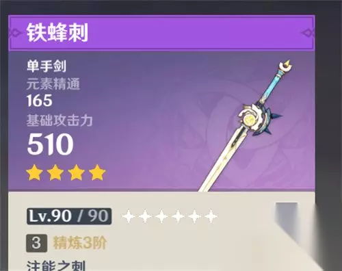 2.西风剑 理论上与祭礼剑想通,都是为了提高充能,在一些玩家的队伍中可能会出现万叶与行秋抢祭礼剑的情况,而西风剑则是祭礼剑的下位替代,极高的产球能力也可以为全队进行一个充能,提高循环 3.铁蜂刺 四星锻造武器,容易获得,副词条为万叶的精髓元素精通,精一即可,但对万叶整体的增伤并没有太大的帮助,我们可以从圣遗物来弥补精通少的问题