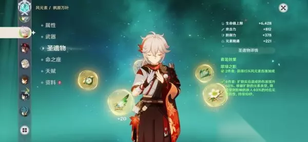 4.笼钓瓶一心 万叶传说任务获得的武器,与万叶外观相契合,副词条与被动都是攻击加成,与辅助万叶不大相通 3.圣遗物选择方面 就选风套,别的不说,词条选择(过渡四星可选择教官套) 在选择充能武器的情况下,精通>双爆>充能>攻击加成,剩下都差不多啦 在选择精通武器的情况下,精通>充能>双爆>攻击