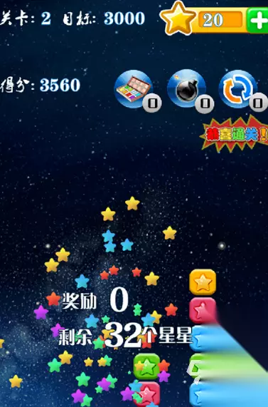 《消灭星星全新版》这款经典的消除游戏又进行了全面的升级,带来了更流畅的操作体验以及更加精致的界面。玩家的任务仍然很简单但是很有挑战性,点击相同颜色的星星并把它们消除。在游戏中,随着关卡的提高,障碍物以及特殊道具的加入使游戏的节奏更加紧张。要在有限的步数之内,精确地规划每一次点击,这就考验了眼力、反应速度以及思维的敏捷性,只有提前做好布局,才能拿到高分。 高速下载 普通下载 优先233乐园APP下载 2、《超级消星星》