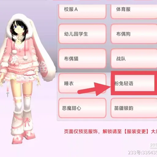 🦋粉兔轻语💞整体是甜美可爱的风格🍃以粉色和白色为主色调💌充满了少女心,非常契合“粉兔”的主题💭头上的白色兔耳连帽设计✨毛绒质感十足,增添了软萌的感觉,服饰上还有一些可爱的小装饰💗比如胸前的兔子玩偶让整体造型更加精致💞