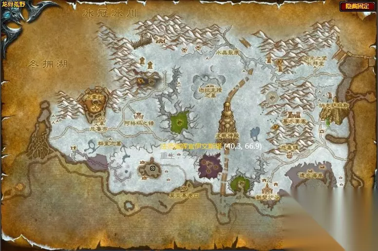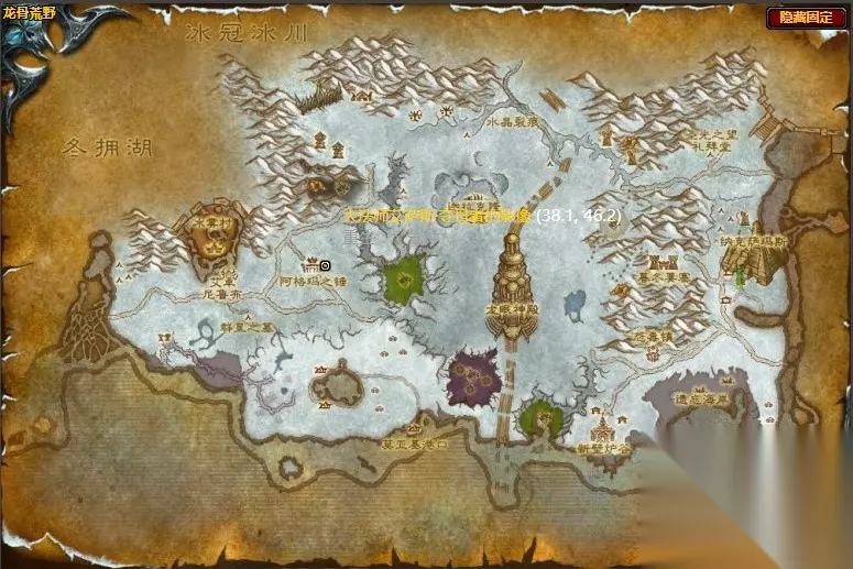 任务需求 使用魔网能量焦点控制饰品从因度雷湖底的魔网能量焦点处收集信息。然后向东走,转至龙骨荒野中南部本地的碧蓝巨龙圣地,在那里的西侧进行调查。 完成调查之后,回到龙骨荒野的阿格玛之锤,向大法师艾萨斯·夺日者的影像复命。 碧蓝巨龙圣地位置图