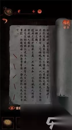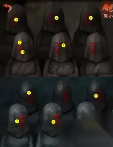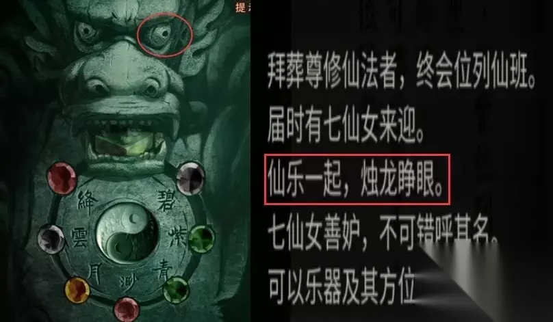 27、看到石灯展开调查,敲打后能够得到道具:凤冠。 28、解谜成功能够得到关键线索。 29、按照下图开展解谜。