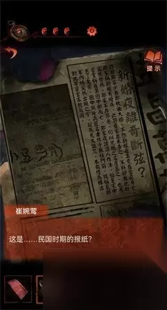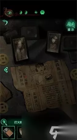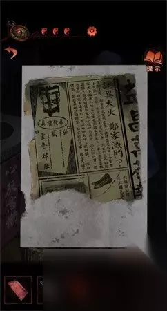 10、接电话可以拾起来一个拨号盘机壳,在大门石狮子下边可以找到机关来操作。 11、在左边按照顺序:壬丙丁己甲来操作能够得到锁匙。 12、应用锁匙将窗帘卧室的大门进行移动,右侧角落中可以找到三个纸人可以找到一个塑像。 13、在塑像上能够得到线索:上坤下干逆天地,左阴右阳掌凶吉。 14、依据线索得到锁匙将窗帘开启,能够得到纸人相片,在右边部位看到报刊寻找下一个迷题的线索。
