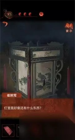 3、依据光线的指导玩家从左边前往红色轿子中,进到剧情可以在娇子中找到化妆盒和木梳。 4、赶到屋子里面能够看见有人在洗澡,拉上窗帘需要记住窗帘上花瓣和文字顺序。