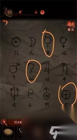 17、转换到女主来到一开始的房间中开启大门进到院子。 18、院中也有着一个浮雕,右边有着一个纸张能够得到线索。 19、应用火机依照:柱、英、冲、芮、心次序照亮。