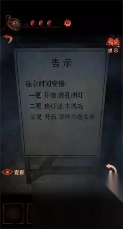 21、敲锣两声将胭脂盒交到玩偶,能够得到道具:梆子。 22、将梆子赠给大打更人可以开启剧情,再前去庙中破译机关得到铜币。 23、在中心位置触碰孔明灯进到剧情。