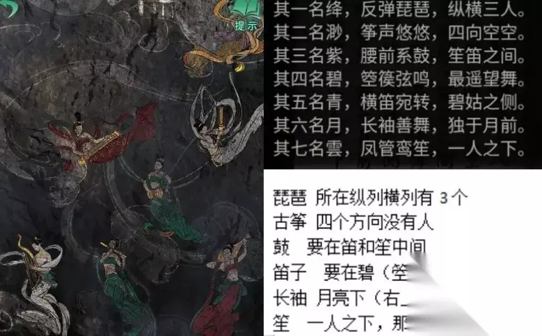 34、在墙壁上可以找到七仙女图,根据之前得到的线索去进行推论解谜。