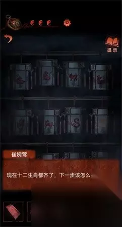 15、赶到宅院中能够看见春联,从右侧的石块狮子雕像中能够得到锁匙:物一定生土。 16、应用锁匙将宅院大门开启,依据右侧部位可以找到一个柜子,上边有着一个机关可供玩家来操作。 17、旋转太极图,将金黄格子放到抑制格子上能够得到道具:玲铛。 18、赶到房内的餐桌可以在蓝色书里找到线索,将圆珠笔放到文曲星上。 19、前去棺木房间,按照顺序敲打:敲福福禄福禄寿,得到道具酒杯,在另一个棺木中可以找到剪子。 20、应用剪子在豪宅中修枝花瓣。 21、运用掠过开展煮茶放到砧板右侧垫子上。 22、在蓝色书籍中可以找到线索,依据线索可以找到木柜,打开得到羊头,猪头。