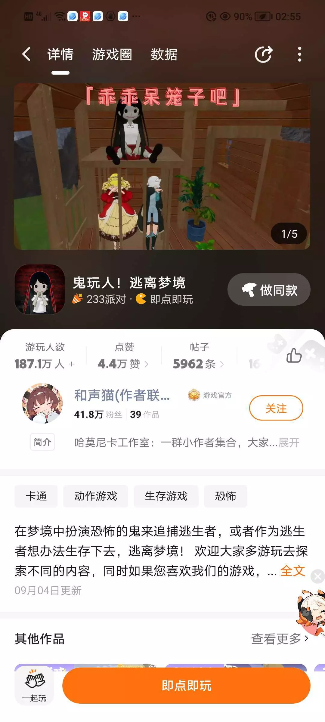 惊悚的画风,独特的服装和多样化的环境与模式。结合了鬼抓人的游戏。让玩家体验激情与速度!