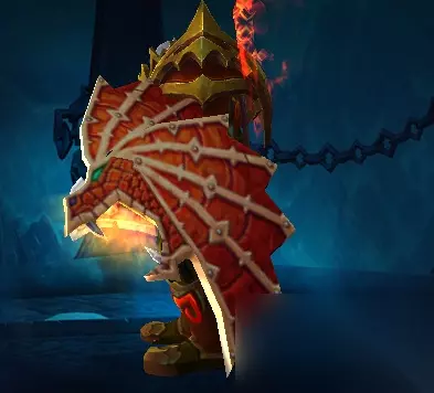 出自:巫妖王年代团本-永恒之眼10人模式下掉落。 在当时虽然是个过渡期的装备,没人在意,但是在幻化系统出来之后,此盾作为一个可以挡住人物模型的超巨大盾牌,还是非常受大家的喜爱。 奥尔多遗产保卫者