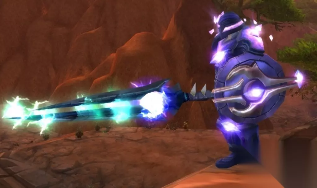 出自:燃烧远征年代-[格鲁尔的巢穴]团本尾王之手 70年代很多坦克的坦度不够时,都会优先选择此盾。外加当时还没有幻化系统的情况下,此盾自带特效,也是非常受玩家喜爱,跟圣骑士的职业套装T5搭配幻化极为合适。 泰坦精钢盾