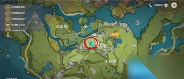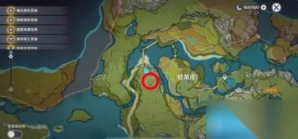 第一处按照文字中的方向依次点亮,类似于一个五角星形状,第二处需要根据文字中的城市方位点亮。 1、首先传送到轻策庄,在轻策庄的左侧山顶上进行任务,位置如下图红圈处所示;