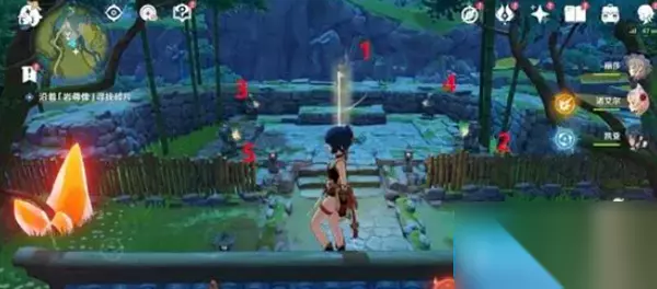 3、按照下图给出的顺序一次点亮岩尊像就可以解锁了,分别是正上、右下、左上、右上、左下;