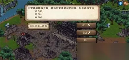 烟雨江湖支线大全 烟雨江湖千机遗迹 支线位置:南岭 任务步骤: 1、南岭(14,26)对话李海,打听【地动】(不用打听也可以)。 2、古城(16,7)搜索,找到石门,解锁顺序(答案不唯一):中央,左上,左,右上,下。