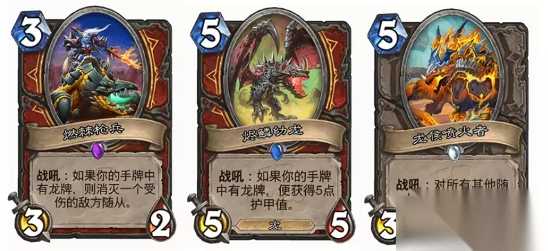 龙体系: 虽然叫机械龙战,但是龙只是一个添头,燃棘枪兵为的是额外斩杀效果,燃烬幼龙为的是护甲,龙喉喷火者为的是战吼的全场打1,打德鲁伊的精灵之森有奇效。然后就没有然后了,更主要的是爆破砰砰体系,将龙体系隐藏在机械体系中,实战中不容易暴露 ,这样有几个好处:对手不知道我们有龙喉喷火者的aoe,也不知道我们还有燃烬枪兵的斩杀,更不知道还有燃烬幼龙的护甲;