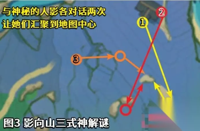 (3)前往鸣神大社调查。 (4)回到荒废神社,利用「留念镜」调查。 解谜攻略:使用小道具「留念镜」,观察特殊的「地狐」雕像,可以看到过去发生的影像。活用元素视野,「地狐」雕像在元素视野下是白色的。 地狐雕像点位见图4: