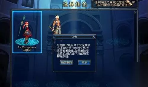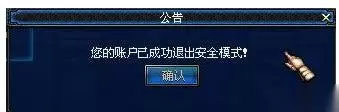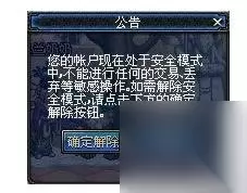 1、进入游戏界面后,如果看见以下提示则表示账号进入了安全模式,需要您验证密保进行解除。 2、买卖等操作触发敏感操作提示之后,点击确定解除按钮。
