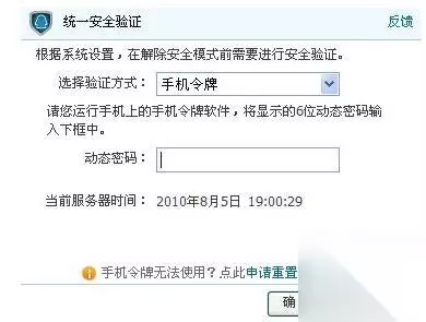 b)点击手机令牌,弹出手机令牌验证框:
