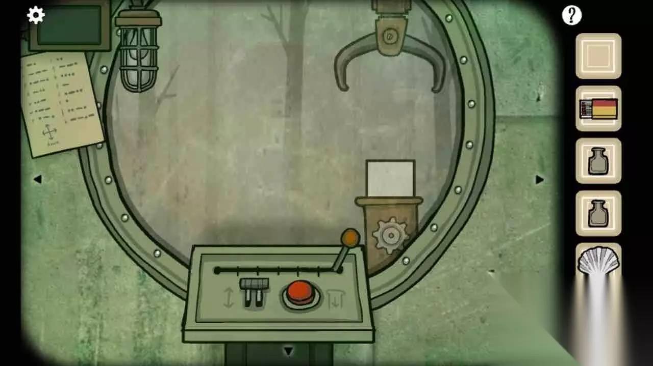 将潜艇开到该位置,点击窗户走出潜艇,来到黑暗森林里的房子。