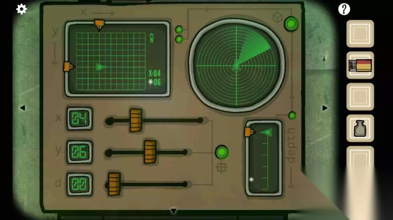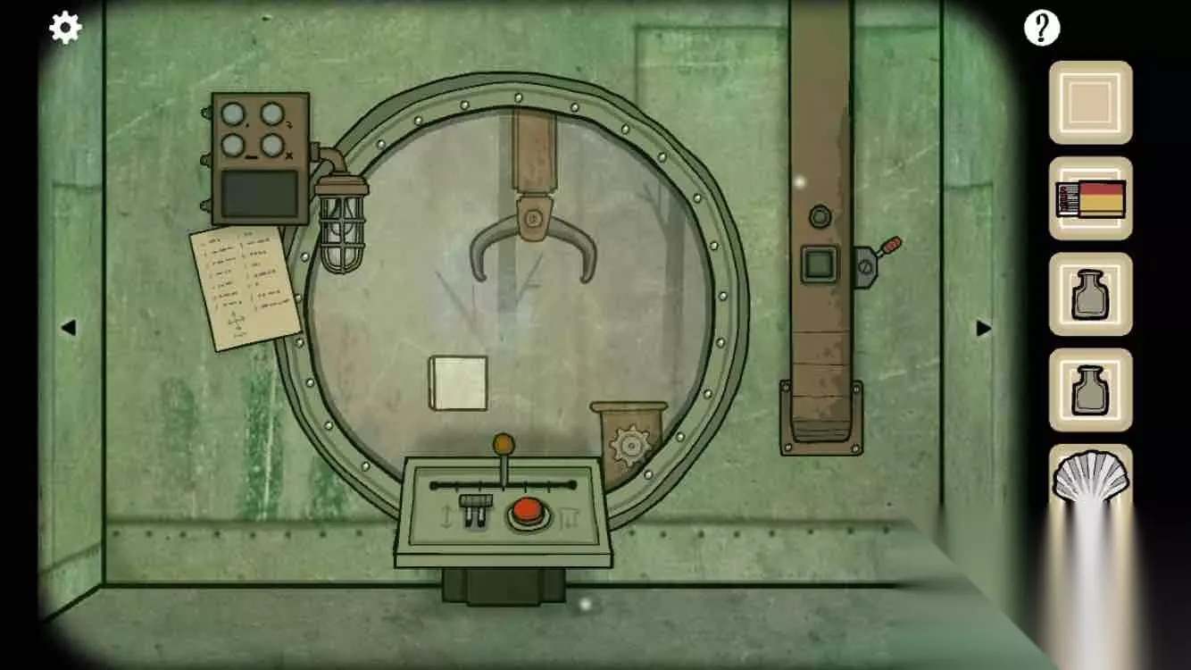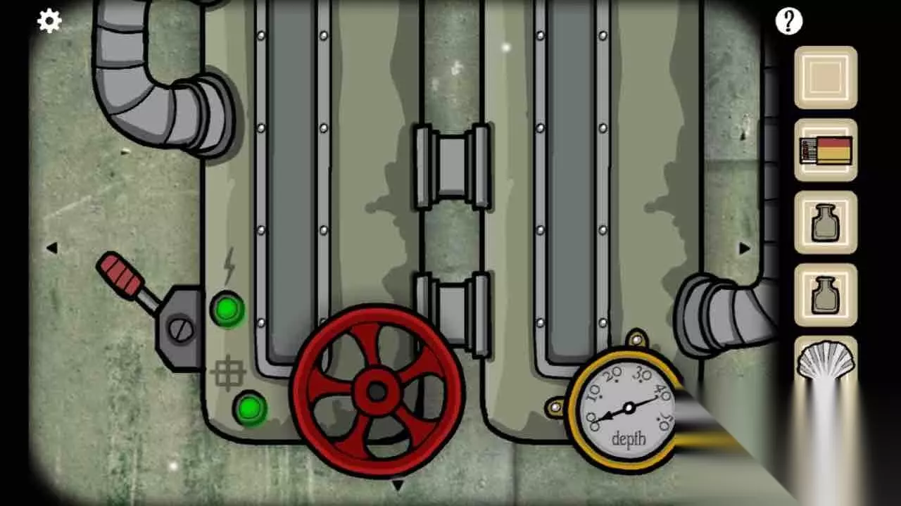 根据第四幅图左上角和右上角的红绿箭头转好旋钮。进入潜水艇。